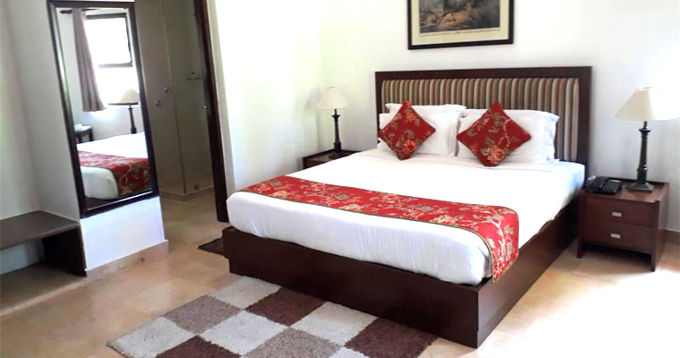 Indulge in the comfort of our Deluxe Rooms, featuring round and square shapes, attached baths, and bay windows that provide stunning views of the surrounding hills and ample natural light.